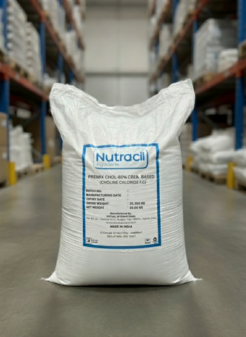Virtual International is a premier global supplier of Choline Chloride 60% Cereal Base, a concentrated and highly palatable source of essential choline for a wide range of animal feed applications. Critical for vital metabolic processes, optimal liver health, and efficient nerve transmission, this indispensable nutrient is uniformly adsorbed onto a high-quality cereal carrier.